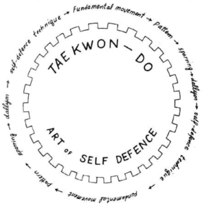 The practice of fundamental movements leads to patterns, sparring, dallyon, and self-defense techniques, but this progression is like a loop and therefore cyclic in nature. The cyclic nature of the progression makes it hard to determine where the cycle starts and where it ends. This cycle is known as the “Cycle of Taekwon-Do (Soonhwan Do)”.