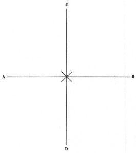 10. Move the right foot on line AB and form a parallel stance to D, while the left palm performs a middle hooking block to D.
