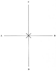 The student is standing on the line AB and facing D.