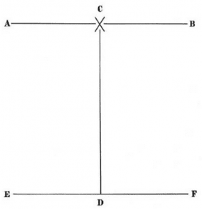 The student is standing on the line AB and facing D.